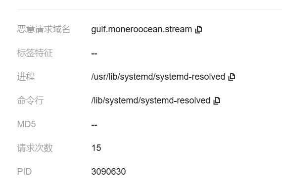 百度可知这个gulf.moneroocean.stream是一个挖矿木马的服务器,但是木马本体肯定不是systemd-resolved,估计是被systemd拉起来的。一时半会找不到这个木马在哪,所以先在腾讯云的服务器安全里配置下拦截策略,把所有关于这个域名的请求都拦截掉。